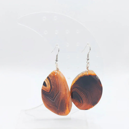 Boucles d'Oreilles Agate Marron - Pierre Brute pour Femmes