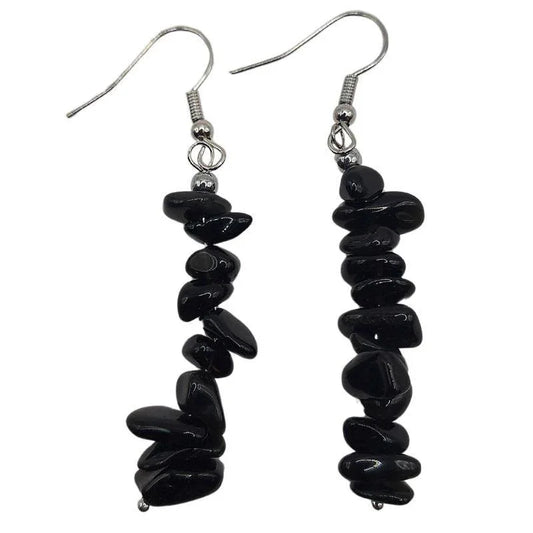 Boucles d'oreilles en pierre naturelle - Obsidienne Noire
