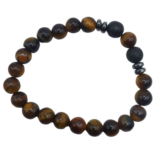 Bracelet Extensible en Pierres Naturelles - Lave Noire et Œil de Tigre