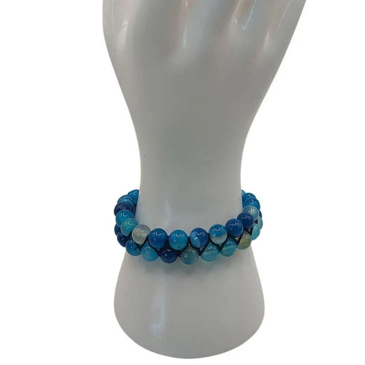 Shamballa Agate Bleu - Bracelet Double Rang Ajustable