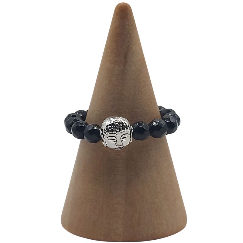 L'onyx noir est une pierre de protection puissante. Il aide à repousser les énergies négatives et favorise la concentration et la force intérieure. Associé aux perles Bouddha, cet anneau encourage également la réflexion spirituelle et la paix intérieure.