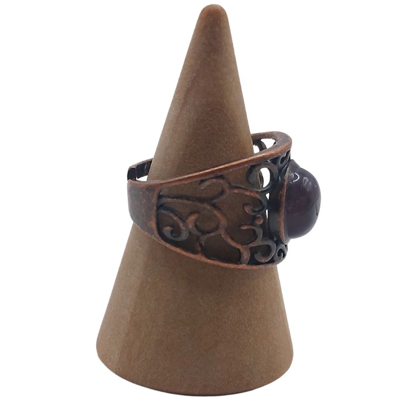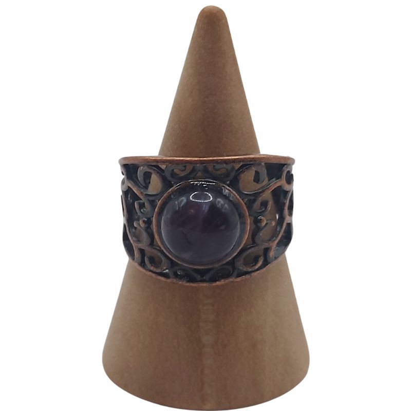 - Couleur Métal : Cuivre rouge, un métal chaleureux et robuste qui contraste magnifiquement avec les teintes royales de l’améthyste.