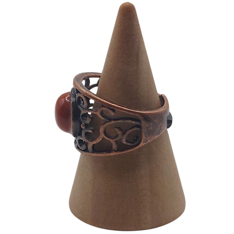 - Style : Le design épuré et élégant de cette bague en jaspe rouge offre un look masculin, puissant et élégant. Le cuivre rouge apporte une chaleur supplémentaire à la pièce, tout en accentuant l’intensité et la beauté des teintes du jaspe.