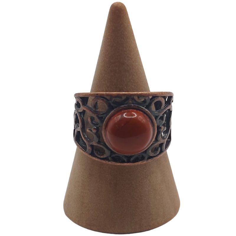 - Couleur Métal : Cuivre rouge, un métal robuste et chaleureux qui met en valeur les couleurs terreuses du jaspe rouge, offrant un contraste parfait entre la pierre et le métal.