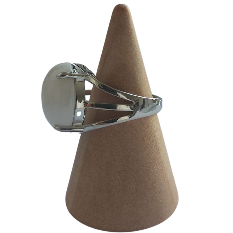 - Matériau de l'Anneau : Réalisée en laiton plaqué platine, cette bague associe durabilité et élégance, tout en mettant en valeur les subtiles nuances de la howlite.