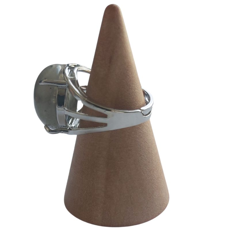 - Matériau de l'Anneau : Fabriqué en laiton plaqué platine, cet anneau allie robustesse et raffinement. Le plaqué platine met en valeur les reflets mystiques de la labradorite, ajoutant une élégance moderne.