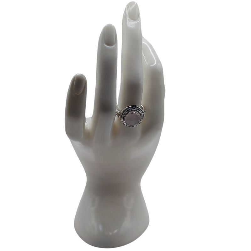 - Style : Le design épuré et la couleur apaisante du quartz rose font de cette bague un choix sophistiqué pour un usage quotidien ou des occasions spéciales.