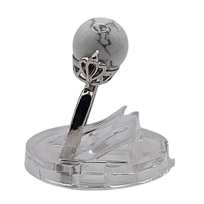 Découvrez la beauté apaisante de notre Bague Sphère en Howlite. Provenant des États-Unis, cette pierre précieuse de qualité A est soigneusement façonnée en sphère et montée sur une base en cuivre plaqué. La howlite est reconnue pour ses propriétés calmantes et esthétiques, ce qui en fait un choix parfait pour ceux qui cherchent à combiner style et sérénité.