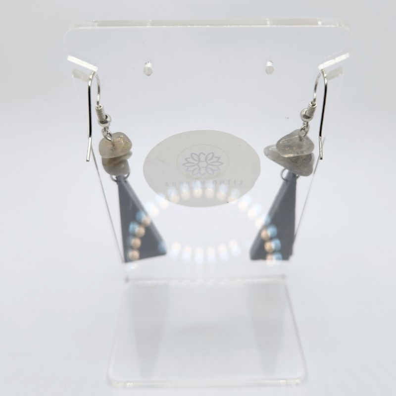 Boucles d’Oreilles en Bois de Poirier - Labradorite