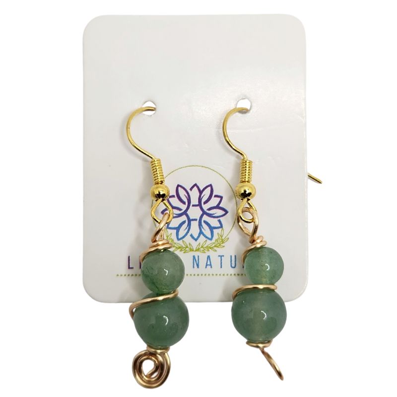 Boucles d'Oreilles en Aventurine Verte Naturelle - Plaqué Or