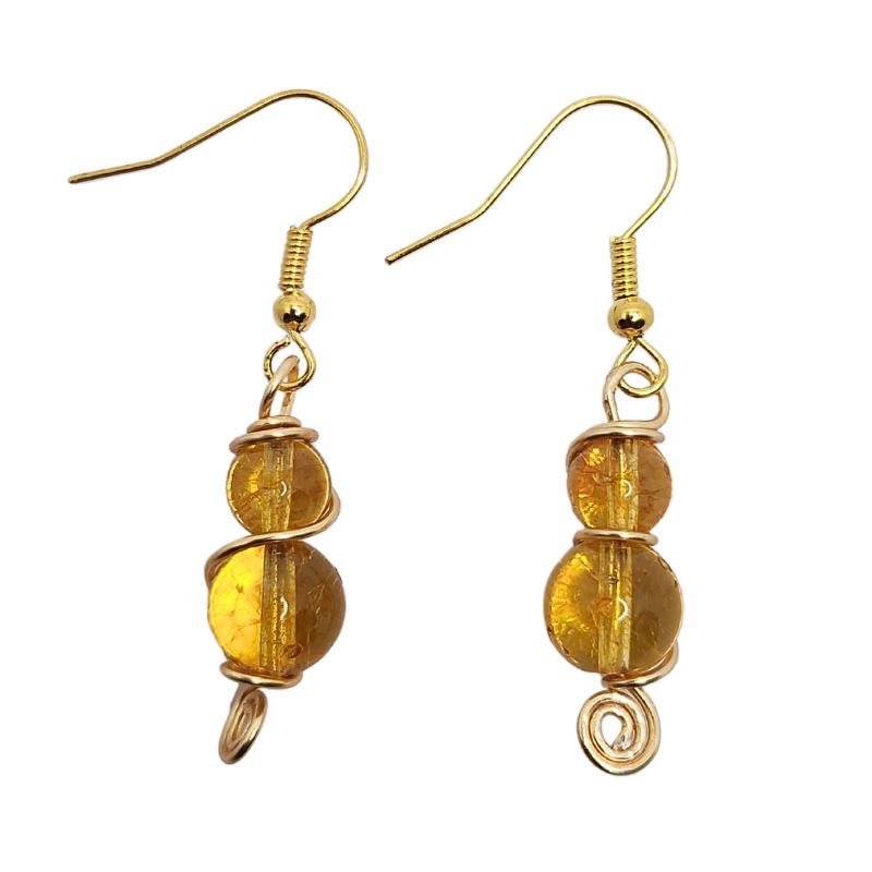 Illuminez votre quotidien avec ces magnifiques boucles d'oreilles en citrine naturelle, délicatement entourées d’un fil de cuivre et suspendues à des crochets en laiton plaqué or. La teinte dorée éclatante de la citrine, associée à la chaleur du métal, en fait un bijou solaire qui attire l’énergie positive et la joie.