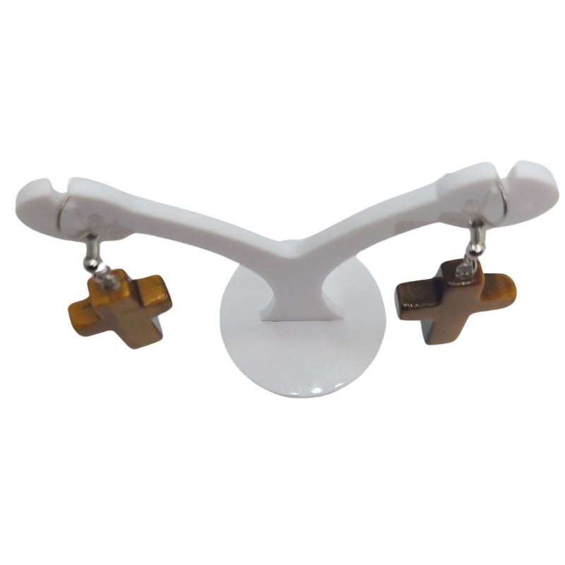 Boucles d'Oreilles en Croix - Oeil de Tigre Naturelle