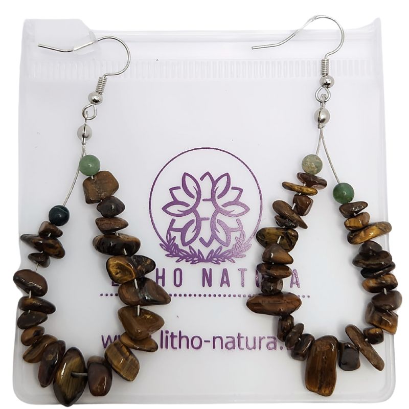 Affirmez votre style avec ces élégantes boucles d’oreilles en œil de tigre, une pierre protectrice et dynamisante. Grâce à leur design sophistiqué et à leurs crochets en laiton plaqué platine, ces bijoux allient puissance et raffinement pour sublimer votre allure au quotidien.